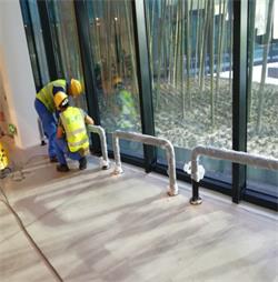 辦公區(qū)中庭玻璃處防撞柱現(xiàn)場安裝施工項目
